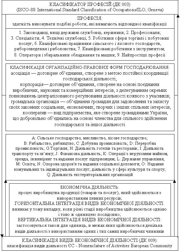 класифікатори професій (ДК 003) та видів економічної діяльності (ДК 009).
