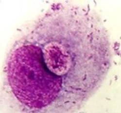 Внутрішньоклітинні включення хламідій у клітинах епітелію з цервікального слизу