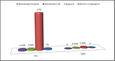Динаміка захворювання на грип та ГРВІ серед різних вікових груп.