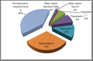 типу-12%, аденовірус складає 31%, респіраторно-синцитіальна інфекція складає