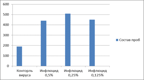 Рис. 3Противірусна дія різних концентрацій Інфлюціда що