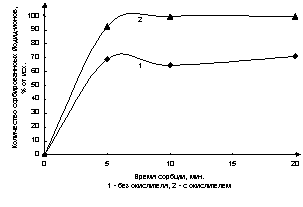 в отсутствии окислителя сорбция йода максимально составила 50% при времени