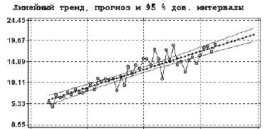 оценивает тренд методом простой линейной или нелинейной регрессии, методом