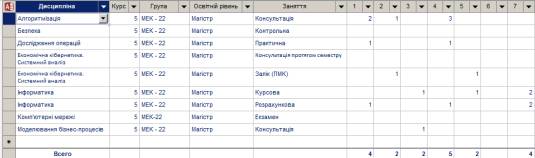 зведений звіт про стан виконання всіх видів робіт викладачами