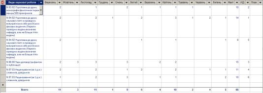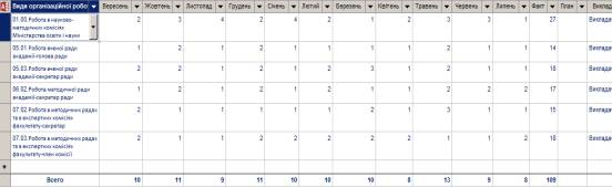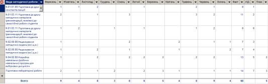звіт по місяцях про стан виконання всіх видів робіт викладачами