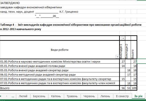 формування звітної документації кафедри та аналізу діяльності викладачів