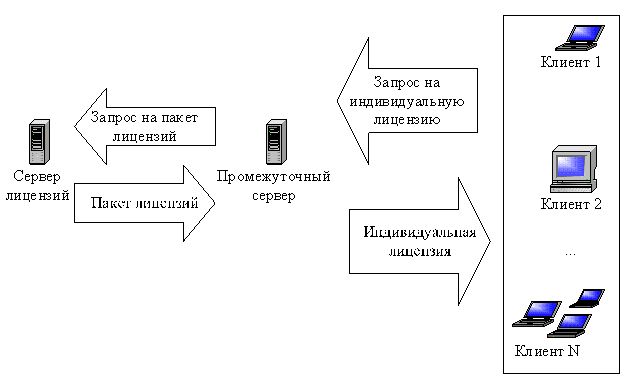 корпоративных информационных систем, в которых промежуточный сервер лицензий