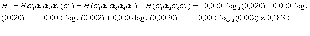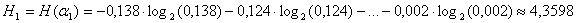 энтропия опыта, заключающегося в приеме одной буквы казахского текста