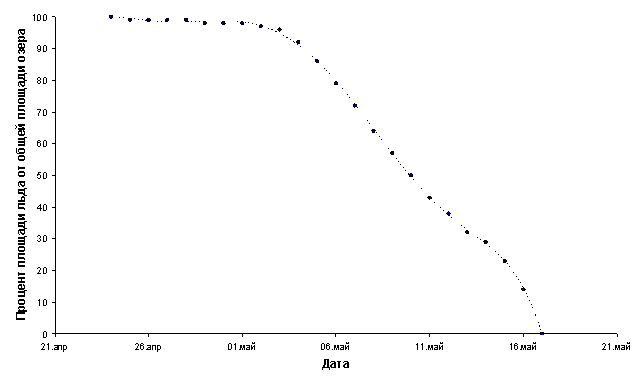 льда в целом происходит быстрее чем его замерзание и оканчивается уже 17 мая.