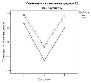 осознания» (до, во время, после) в отношении компоненты F2 представлен на рис.1. Левый рисунок из пары отражает изменения для контрольной группы, правый