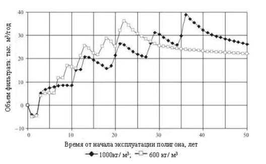 Для крупного полигона в среднем количество фильтрата составляет от 300 до 800