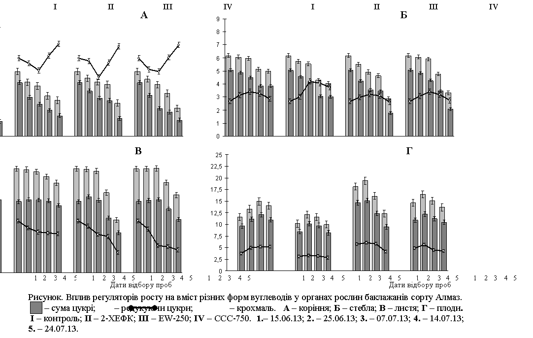 та етиленпродуцентів на динаміку накопичення вуглеводів у рослин баклажанів