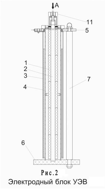Электродный блок состоит из графитового вспомогательного электрода - 1,