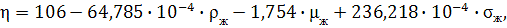 характеристик шлама (плотности – ρж, вязкости - µж,
