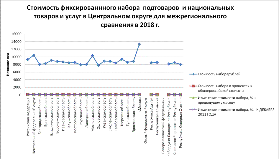 Рисунок 1. Стоимость фиксированнного набора подтоваров и национальных товаров и услуг в Центральном округе для межрегионального сравнения в 2018 г.