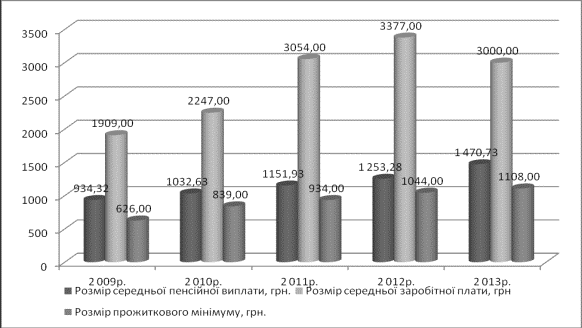 пенсійної виплати, середньої заробітної плати та прожиткового мінімуму в