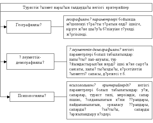 параметрлері болып табылатындар: уәж, сапарлар, турист типі, мерзімдік,