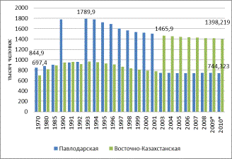 по характеристикам населения по Павлодарской и Усть-Каменогорской областям [1- 7].