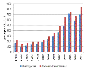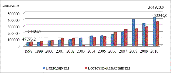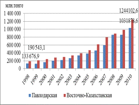 здесь проанализирован объем валового регионального продукта по 2-м областям Восточного Казахстана