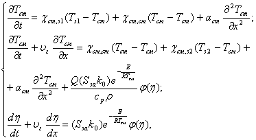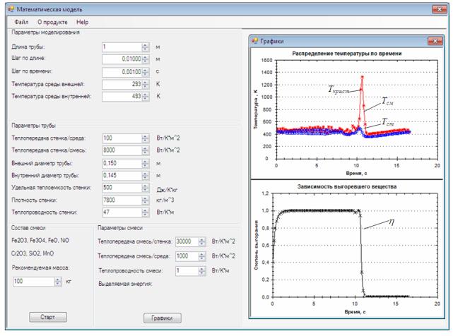 расчет зависимостей распределения температур сред и степени выгорания вещества