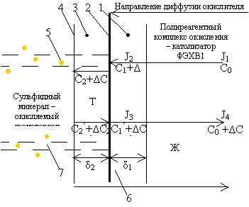раздела фаз, в объёме раствора; J1, J2, J3, J4 – количество окислителя, переносимого в единицу