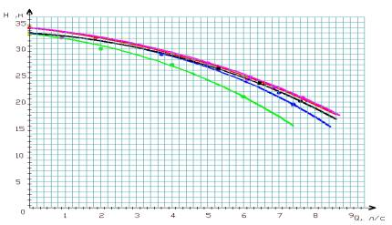 зависимости напора от расхода при разной величине и направлении закрутки потока