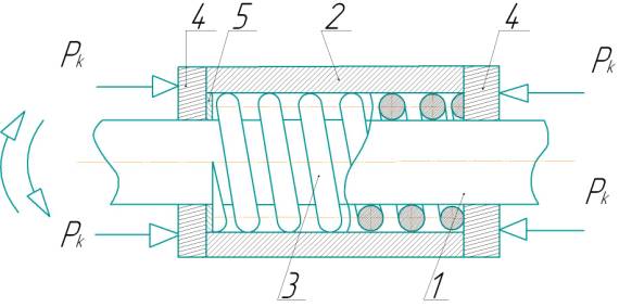 спирального вкладыша 3 в виде винтовой пружины, (рис. 2) торцевых крышек 4 и регулировочной шайбы