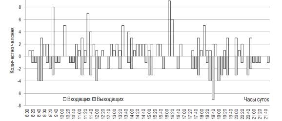 исследования заключалась в определении числа вошедших и вышедших посетителей за