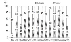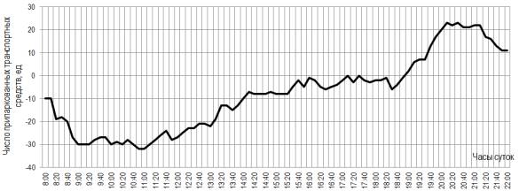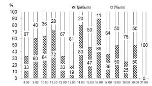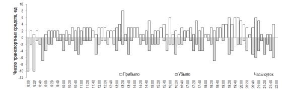 въезжающим и выезжающим транспортом внутри часового периода остается примерно