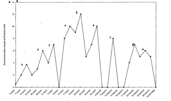 June 20. Recession of high activity of summer of an imago was registered since