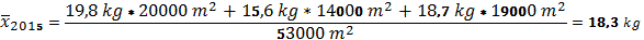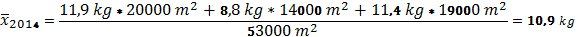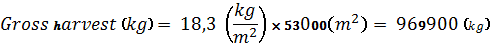 cultivated area – 5,3 ha (53000 m²). Using the following formula: