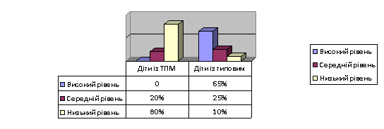 Виявлено, що у дітей із ТПМ переважає низький рівень