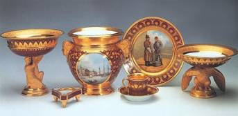 Классическим примером полного соответствия форм фарфоровой посуды архитектурно-предметной среде может служить « Гурьевский сервиз », выполненный по проекту С. Пименова [2].