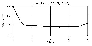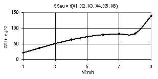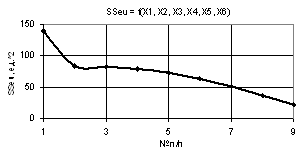 1…0.1, Х6 = 0.1...1. На рис. 7 построенная кривая SSeu растет с 48,64 до 60953 в точке 5,