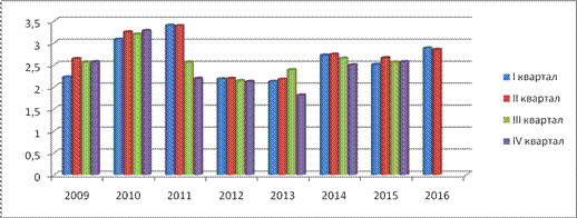 індекси привабливості України за 2009 - 2016 рр. представлені на рис. 1 [3,