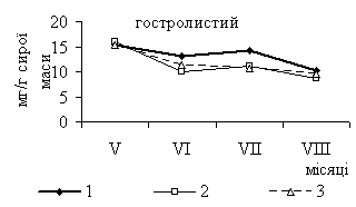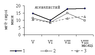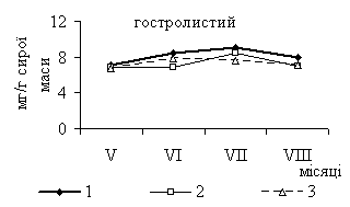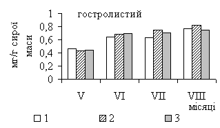 Так, в фазу активного росту (червень) спостерігали зменшення вмісту цього