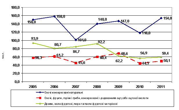 Динаміка виробництва плодоовочевої консервної продукції в Україні в 2005-2011