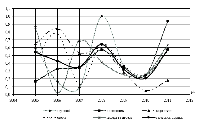 групою «зернові культури» займає практично весь діапазон варіації інтегральних