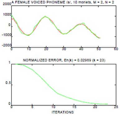 моделировании экспериментального сигнала женской голосовой фонемы буквы «а».