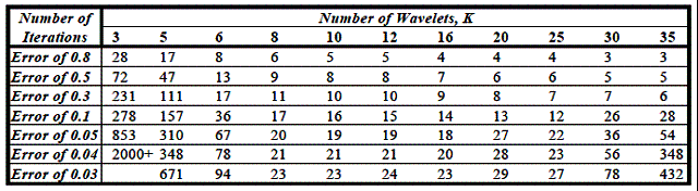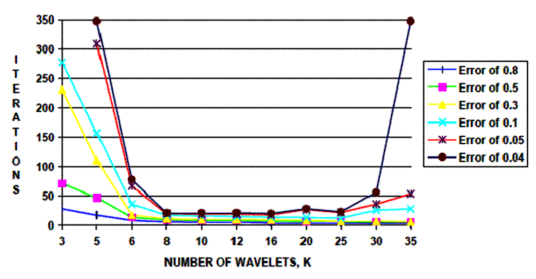например, для К = 3, то обучение вейвнета занимает 28 итераций при достижения