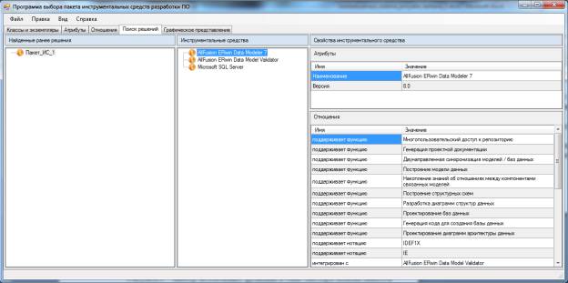 поиска и выбора пакета инструментальных средств по заданным критериям.