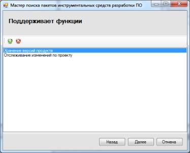 возможных функций в окне мастера поиска пакетов инструментальных средств
