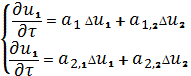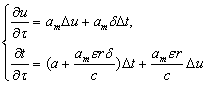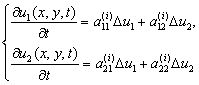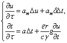переходя к обычным обозначениям координат (х,у), и времени t,