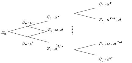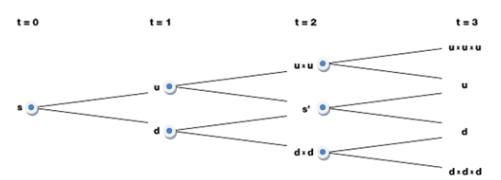 многошаговой биномиальной модели. Здесь t - период; s - первоначальная стоимость актива; u - рост стоимости; d- снижение стоимости