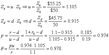 или опуститься до $45.75. Найти цену опциона в рамках многошаговой модели.