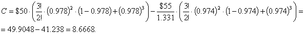 заключения контракта равен $50, цена исполнения $55, безрисковая процентная