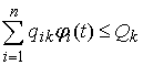 и K возобновимых ресурсов k=1,2,...,K, в каждый момент времени t доступно Qk единиц ресурса k.
