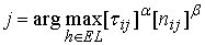 – предполагаемой выгоде ηij – эвристической информации о том, насколько