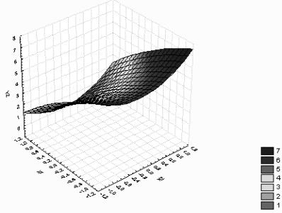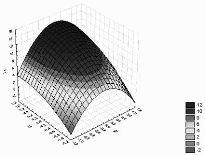 Рис. 3. Поверхность отклика уравнения Y2 (зависимость