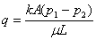 q – объемный расход жидкости, см3/сек; μ – вязкость жидкости, мПа∙с; k –